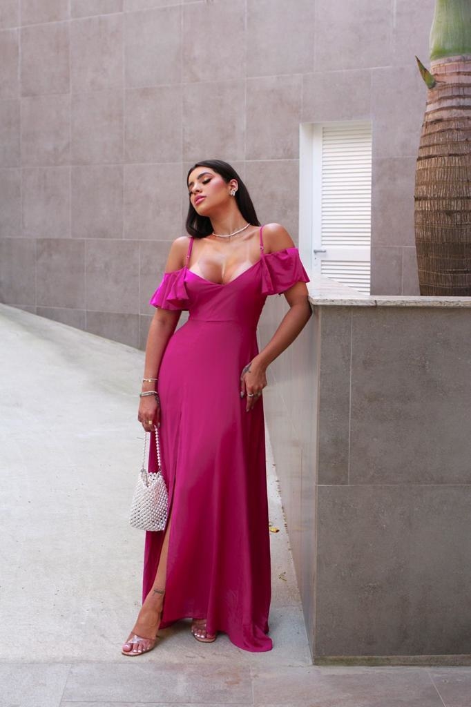 Vestido babado fenda